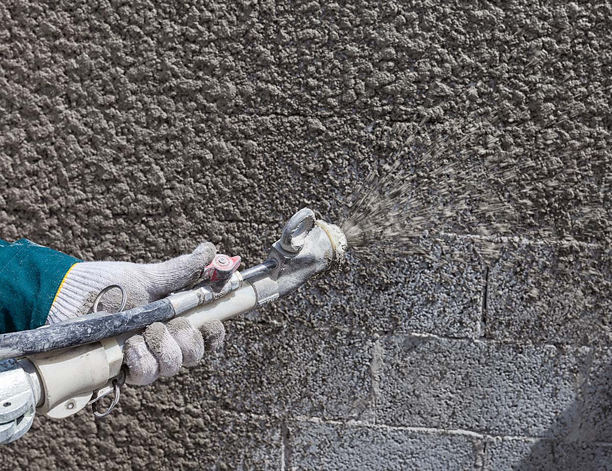 Shotcrete and Grout solutions Shotcrete is mortar, or high-performance concrete conveyed through a hose and pneumatically projected at high velocity onto a backing surface. It is the force of this spraying action that leads to compaction of the concrete or mortar which then forms layers of concrete to the required thickness. Shotcreting has proved to be the best method for the construction of curved surfaces. Tunnel linings and domes are now much easier to construct with the advent of shotcrete technology.